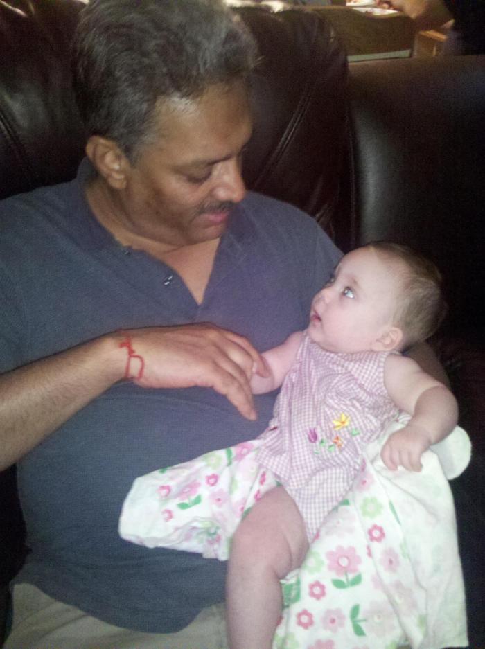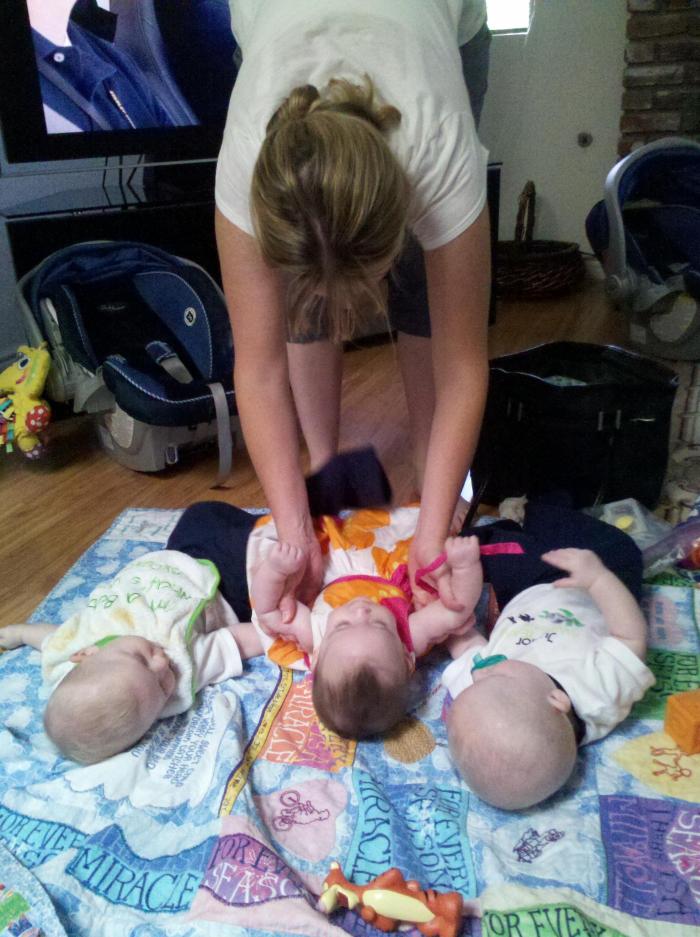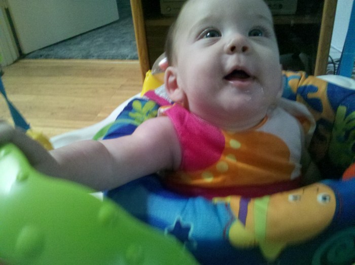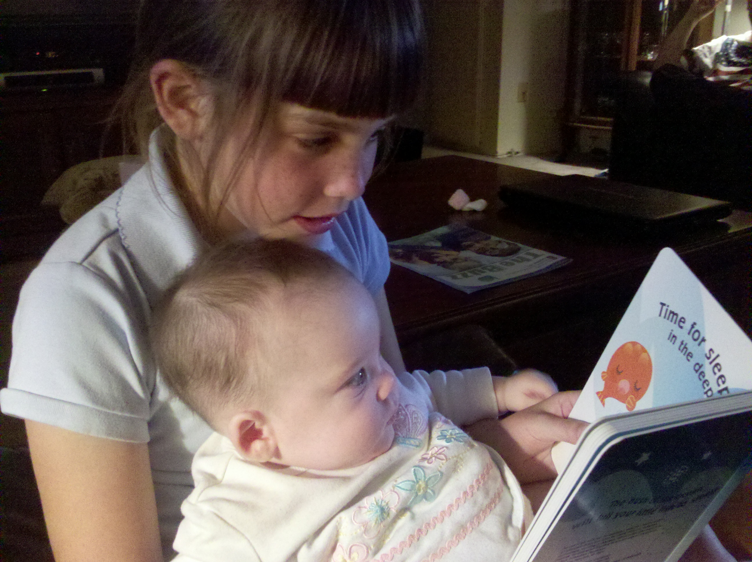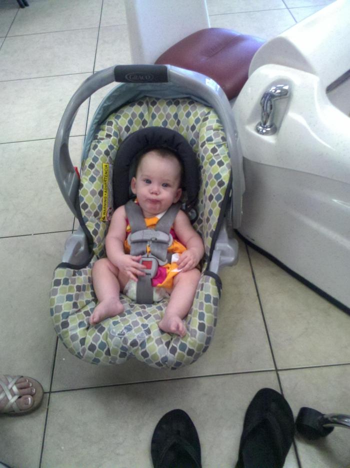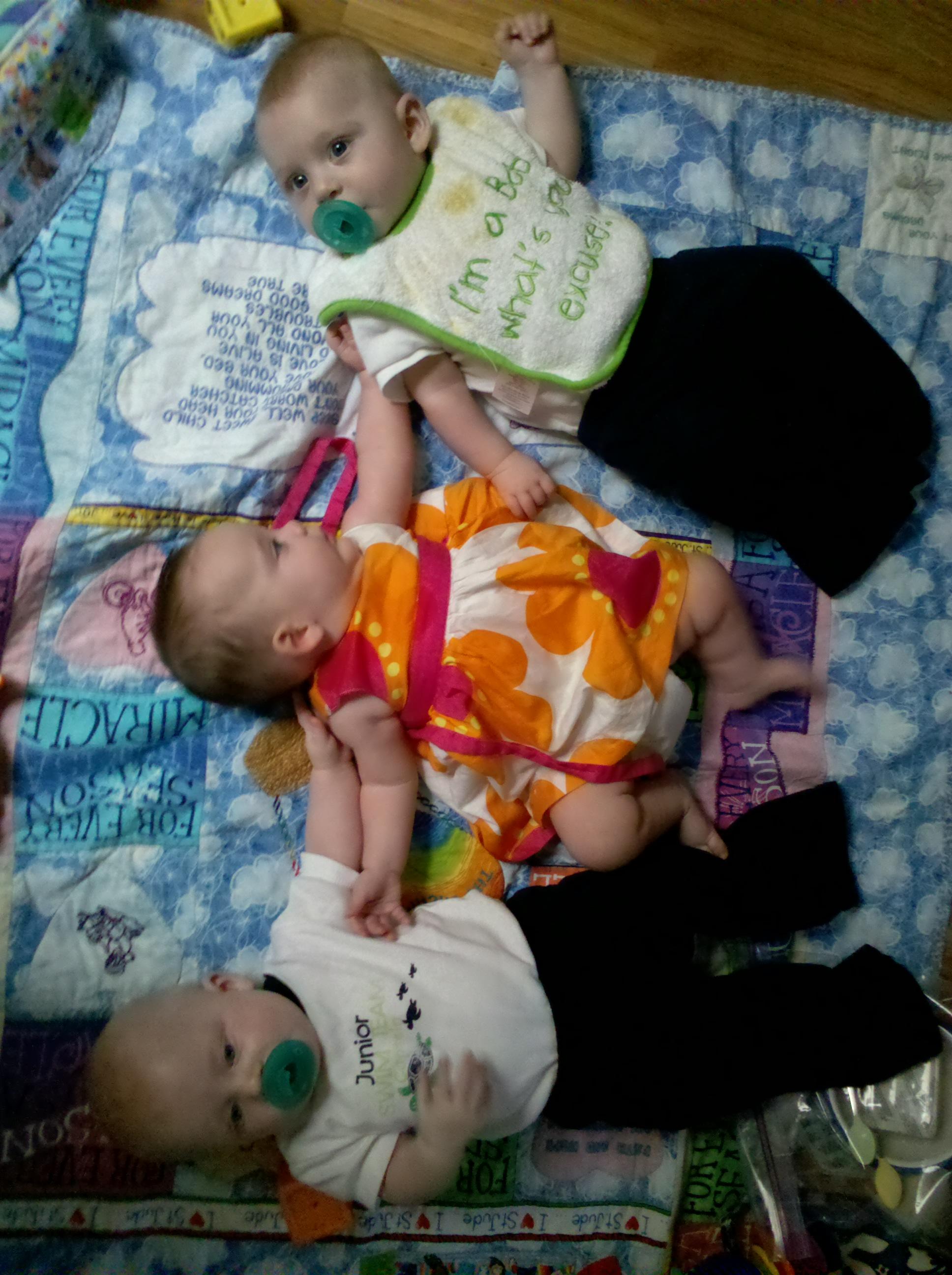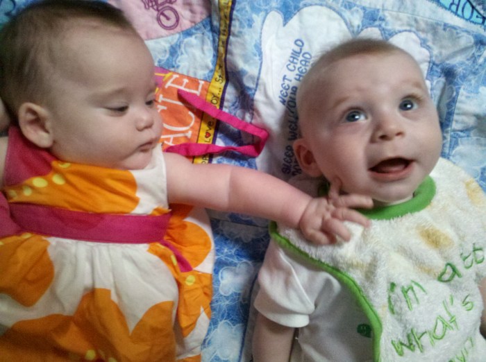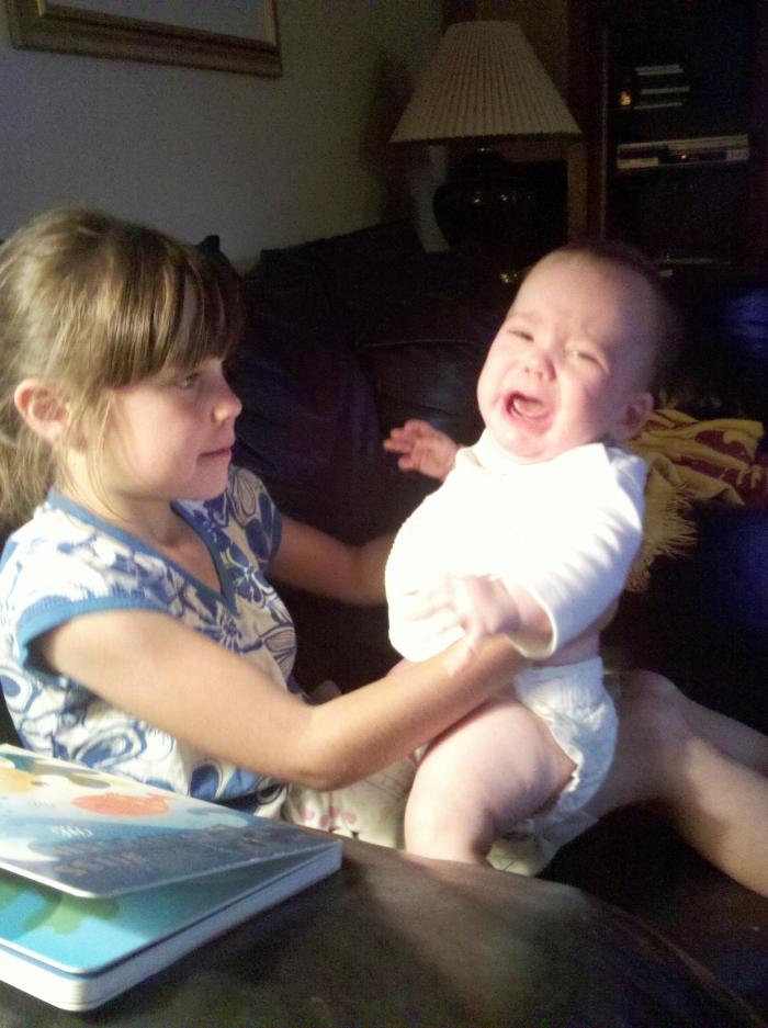 Darla met Julie’s twins. She pulled the ear of one and the other one cried!