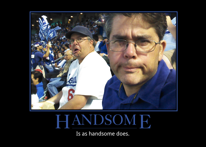 Darla’s Daddy and our family friend Mr Scott Caster made faces at The Dodger game. Of course they were going to be posted on the internet.