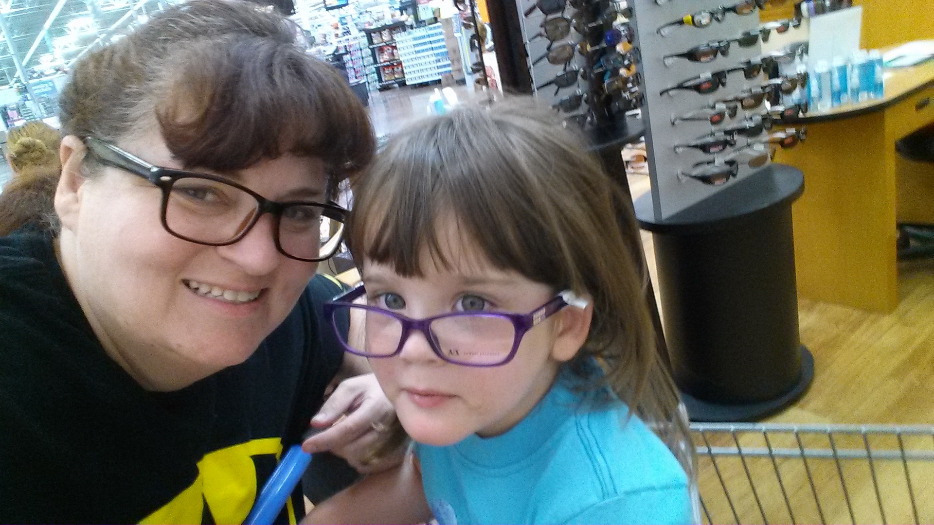 We took Uncle Gary shopping for glasses and Darla tried some on.