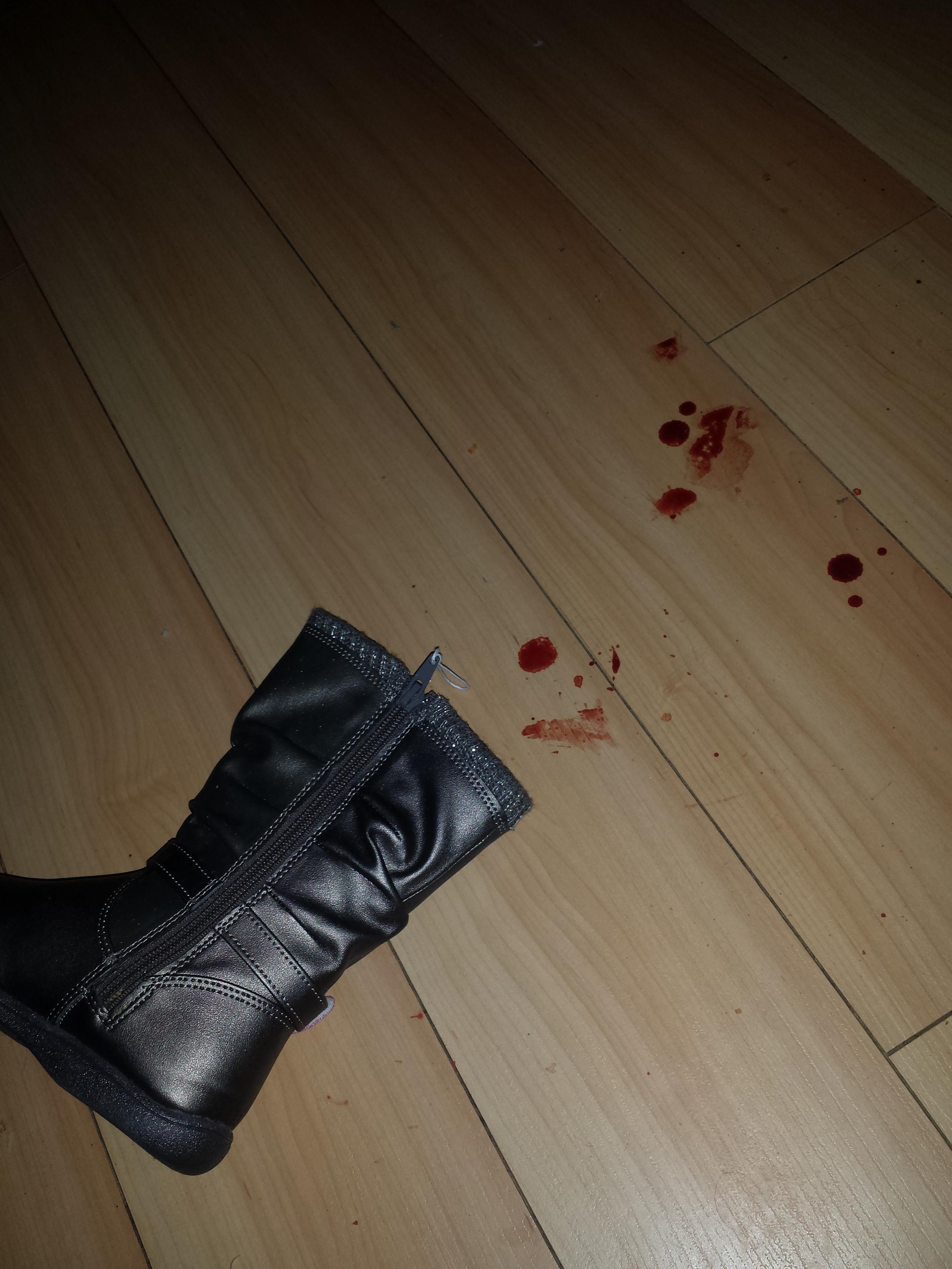 Also, the path from living room to bathtub could have been mistaken for a crime scene