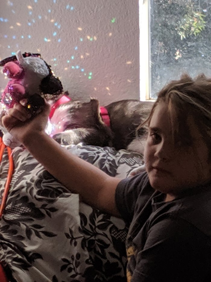I don’t know who likes the lights more, Darla or the cat.